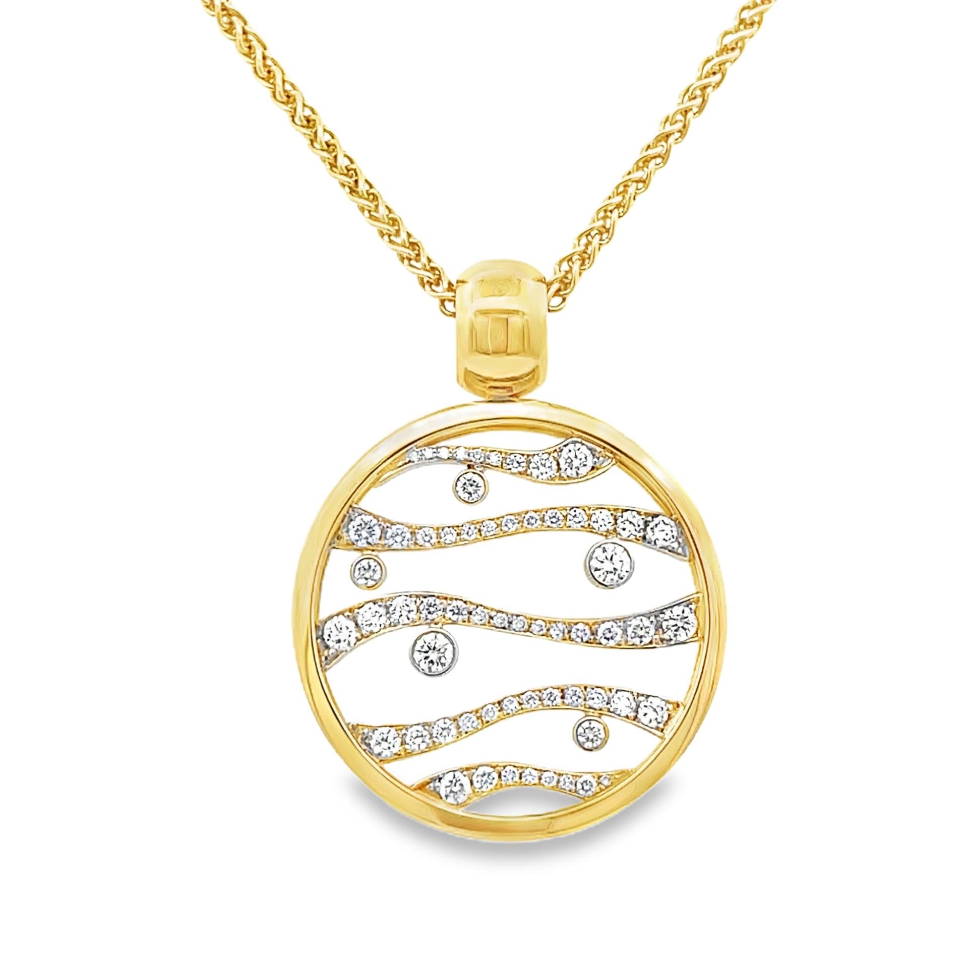 Handmade 18 karat yellow gold pendant with 61 diamonds 1.14 carats of total weight.