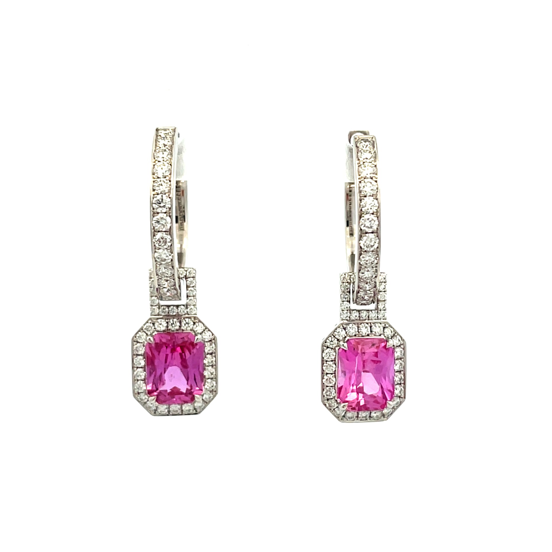 Handmade 18 karat white gold detachable earrings featuring Pink Sapphires 2.22ctw and accented by diamonds.